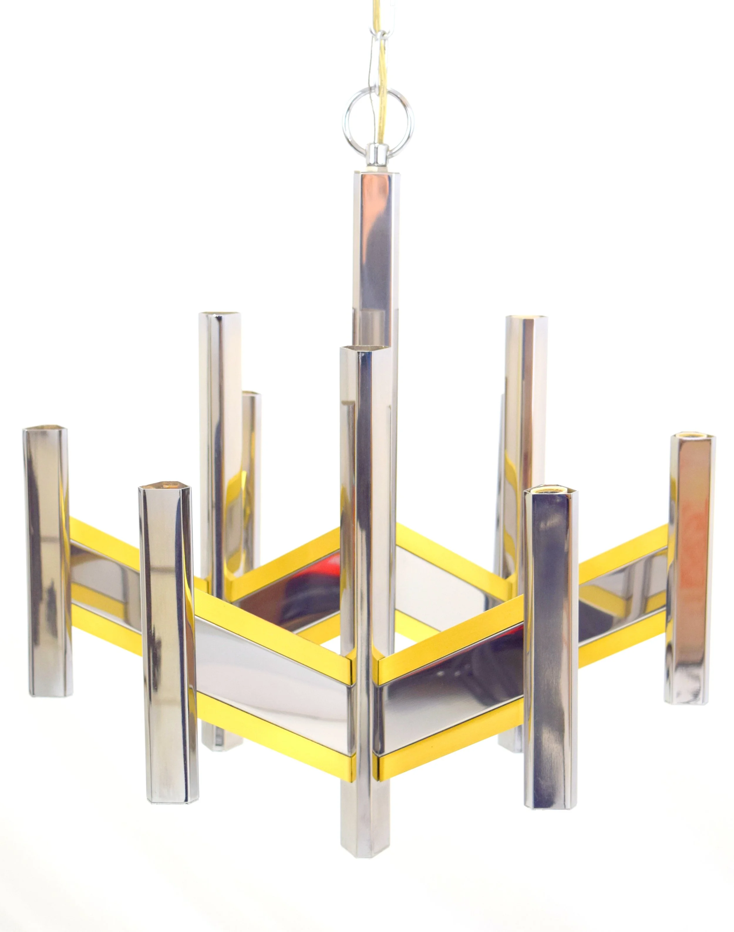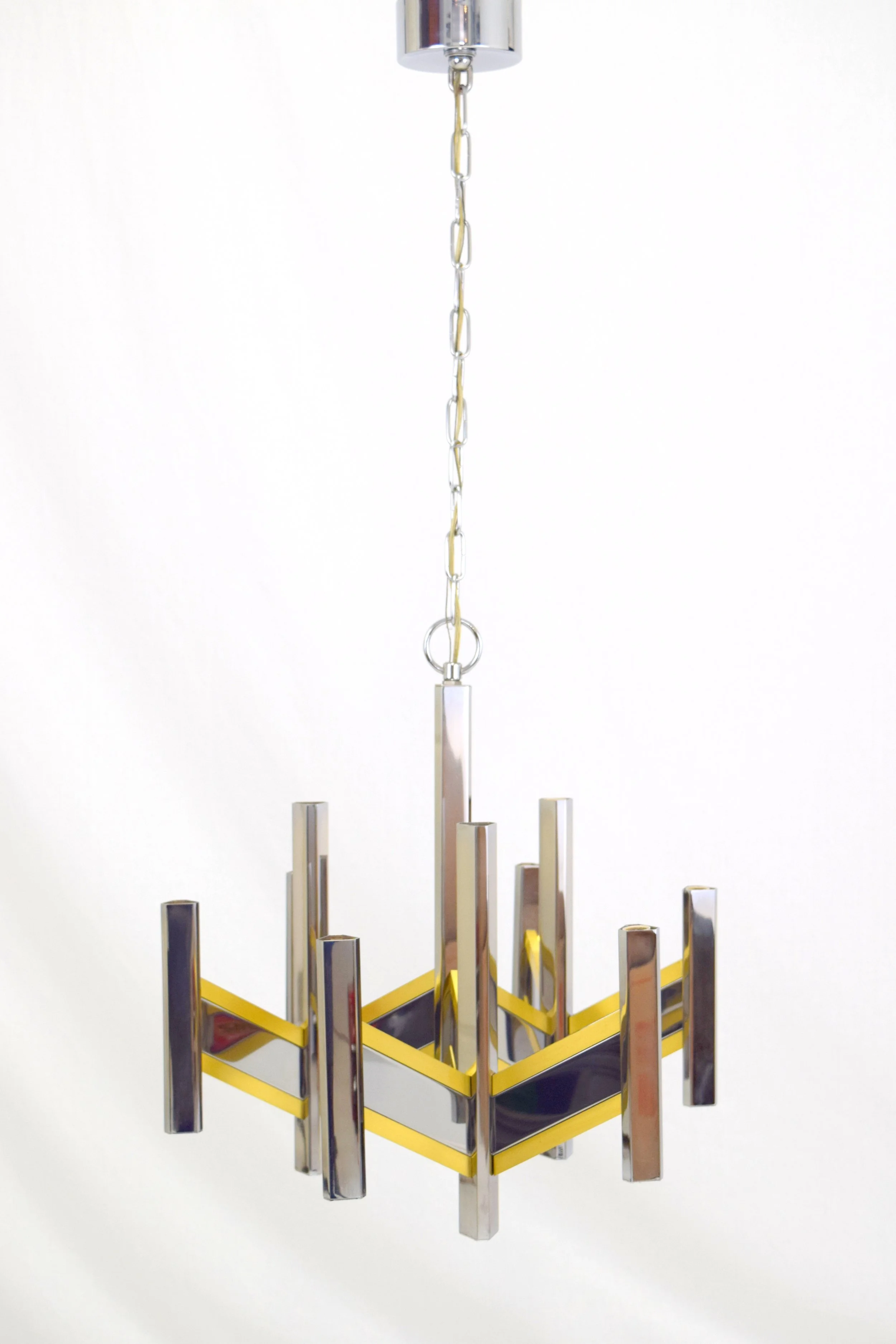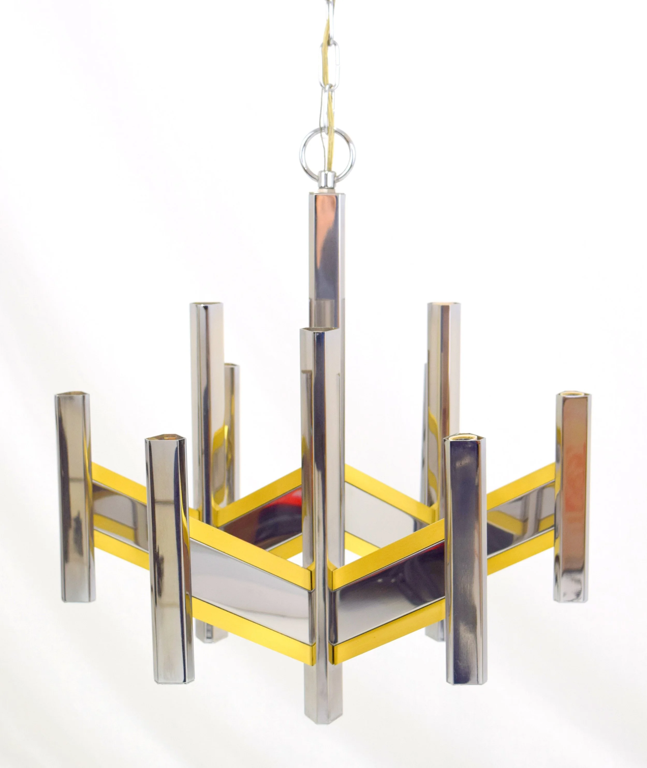 Categories: All Furniture Lighting Art & Sculptures Metalwork Glassworks Pottery Miscellaneous All / Gaetano Sciolari 9 - Arm Chrome and Brass "Chevron" Chandelier $1,800.00 Vetri Murano Table Lamps $1,800.00
